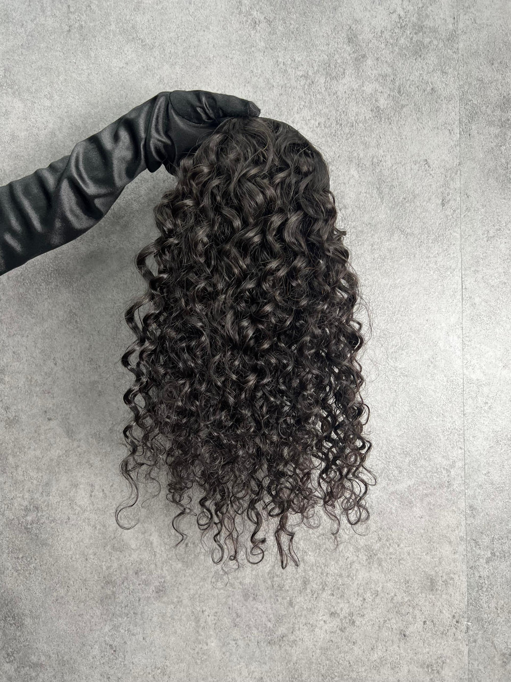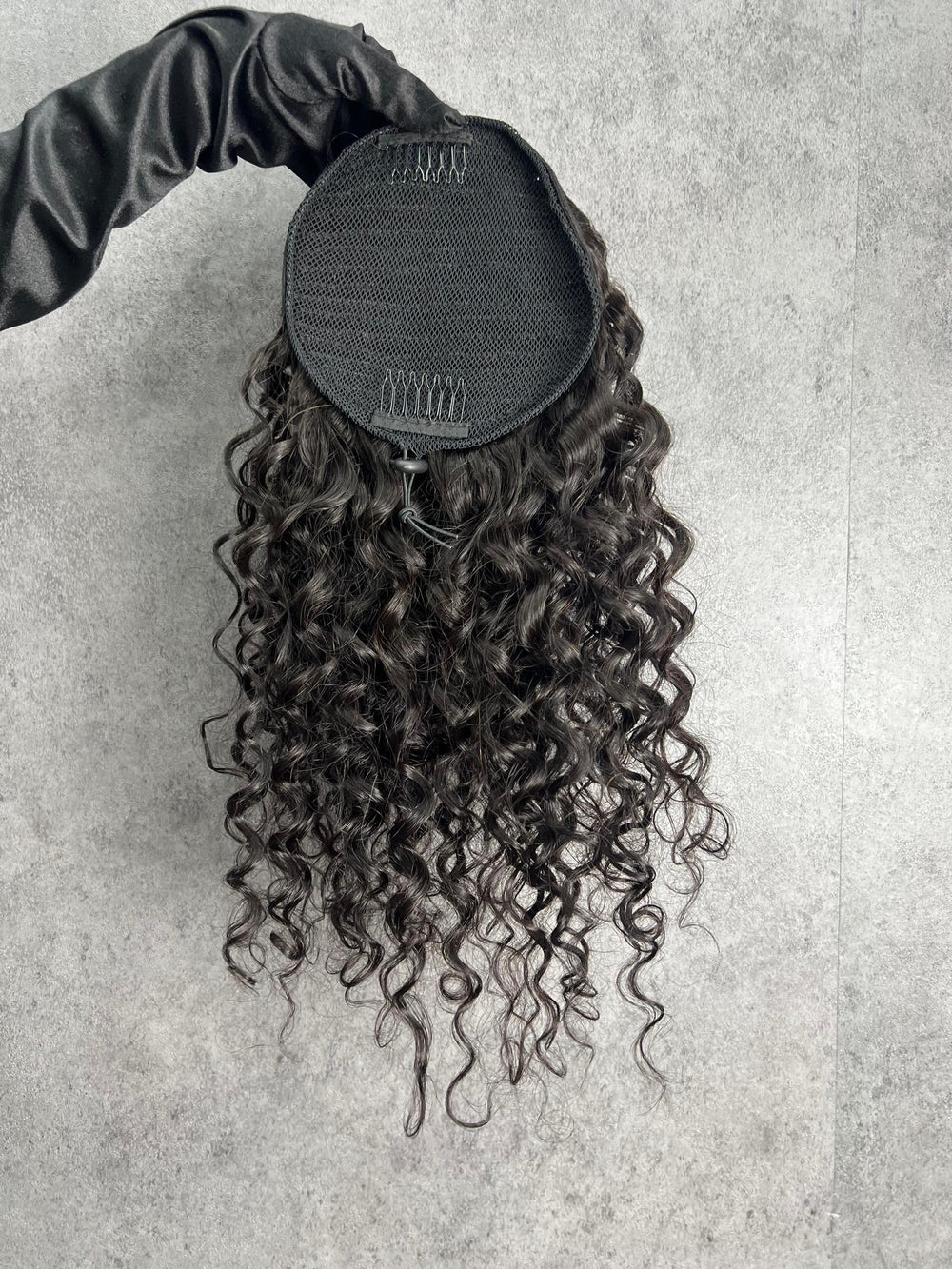 The Water Curl Ponytail features natural human hair styled in defined, water-inspired curls for a fresh, voluminous look. Equipped with a convenient drawstring, this ponytail secures quickly and comfortably, offering easy installation with a flawless finish. Ideal for adding effortless texture and bounce, it seamlessly blends with your natural hair for polished, everyday wear or special occasions.